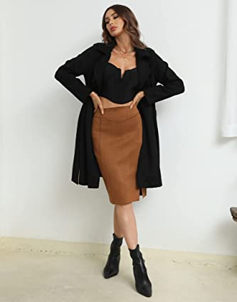Alcune donne hanno adorato i capi in camoscio, e le loro gonne hanno iniziato il clamore. Il marchio è diventato una tendenza e puoi abbracciare uno stile dai loro pezzi di moda. Inoltre, hanno introdotto la gonna a matita Bellivera in finta pelle scamosciata sul mercato, disponibile in sei colori diversi. Non dovrai preoccuparti della lunghezza di questa gonna perché l’orlo arriva sopra il ginocchio. Un acquirente ha menzionato che funziona anche per le ragazze alte.