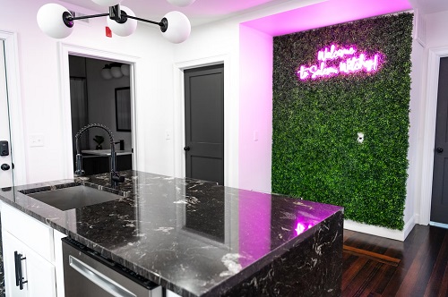 Una collezione d’arte allestita in cucina non passerà mai di moda. Puoi farlo anche se hai uno spazio ridotto. È importante trovare l’area perfetta per posizionare le stampe. Dai un’occhiata a questo elemento elegante e goditi una cucina rivestita in marmo. Inoltre, puoi investire in sculture e quadri che si adattino al tuo spazio.